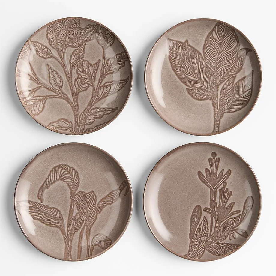 Chestnut Botanical Appetizer Plates (Set of 4) — raised botanical texture for small bites and dessert.
