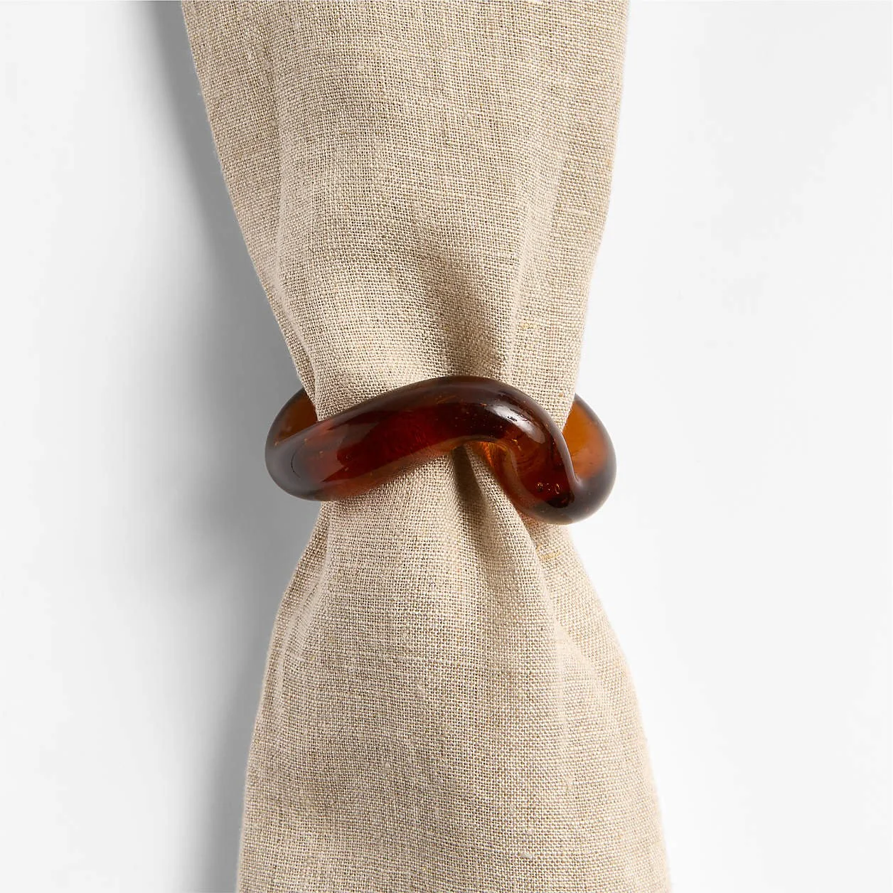 Each organically shaped ring curves a unique shape in amber-colored recycled glass that's polished by hand.